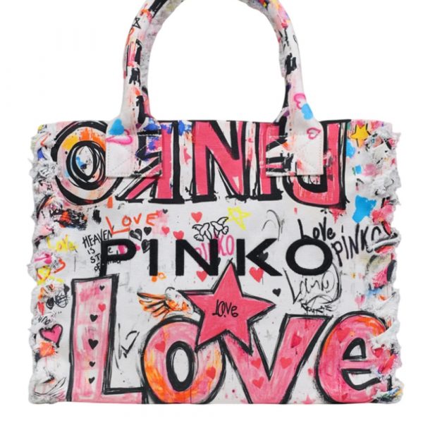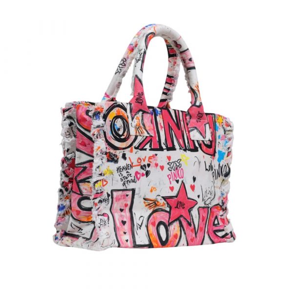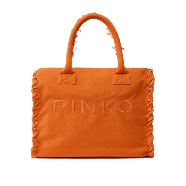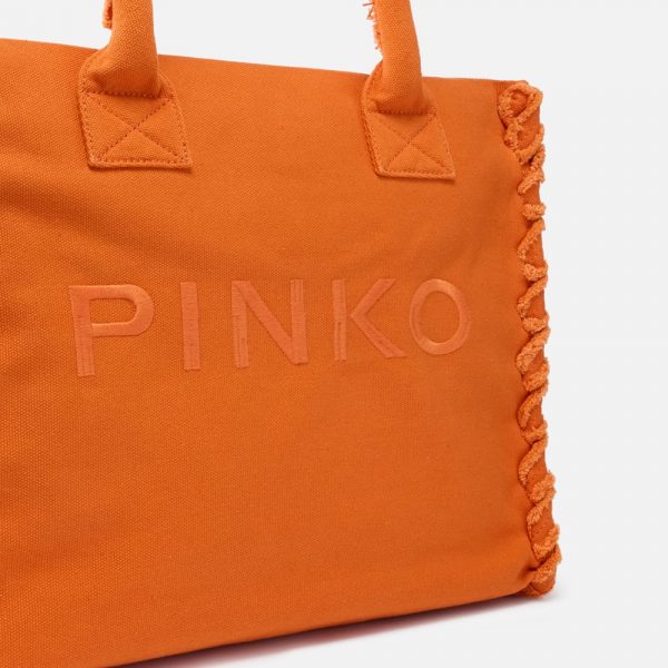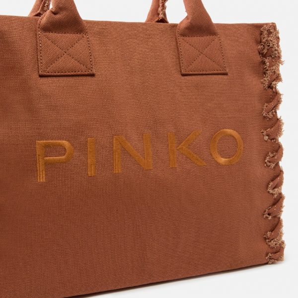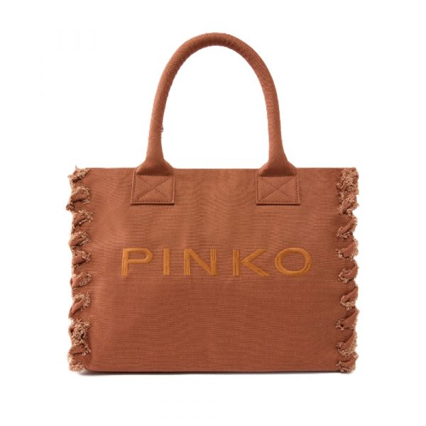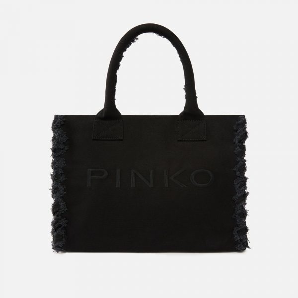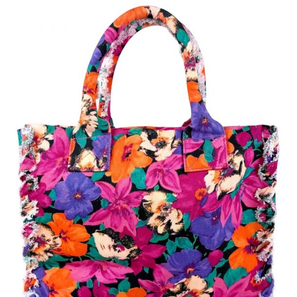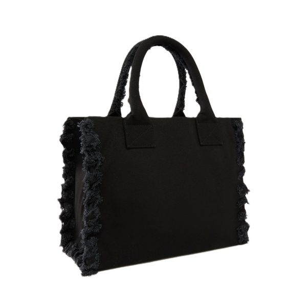 Borsa shopper media Beach in canvas con logo e dettagli sfrangiati