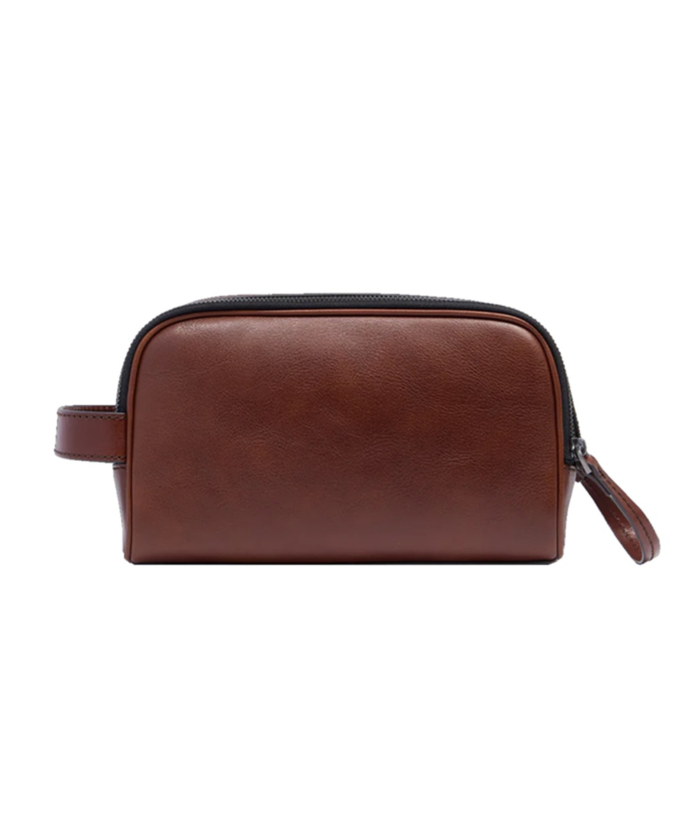 Beauty Case Filippo Marrone The Bridge, accessorio funzionale realizzato in raffinata pelle, con targhetta frontale logata. Manichetto fisso e comparto chiuso con doppia cerniera. Interno in pelle completo di tasca a parete.