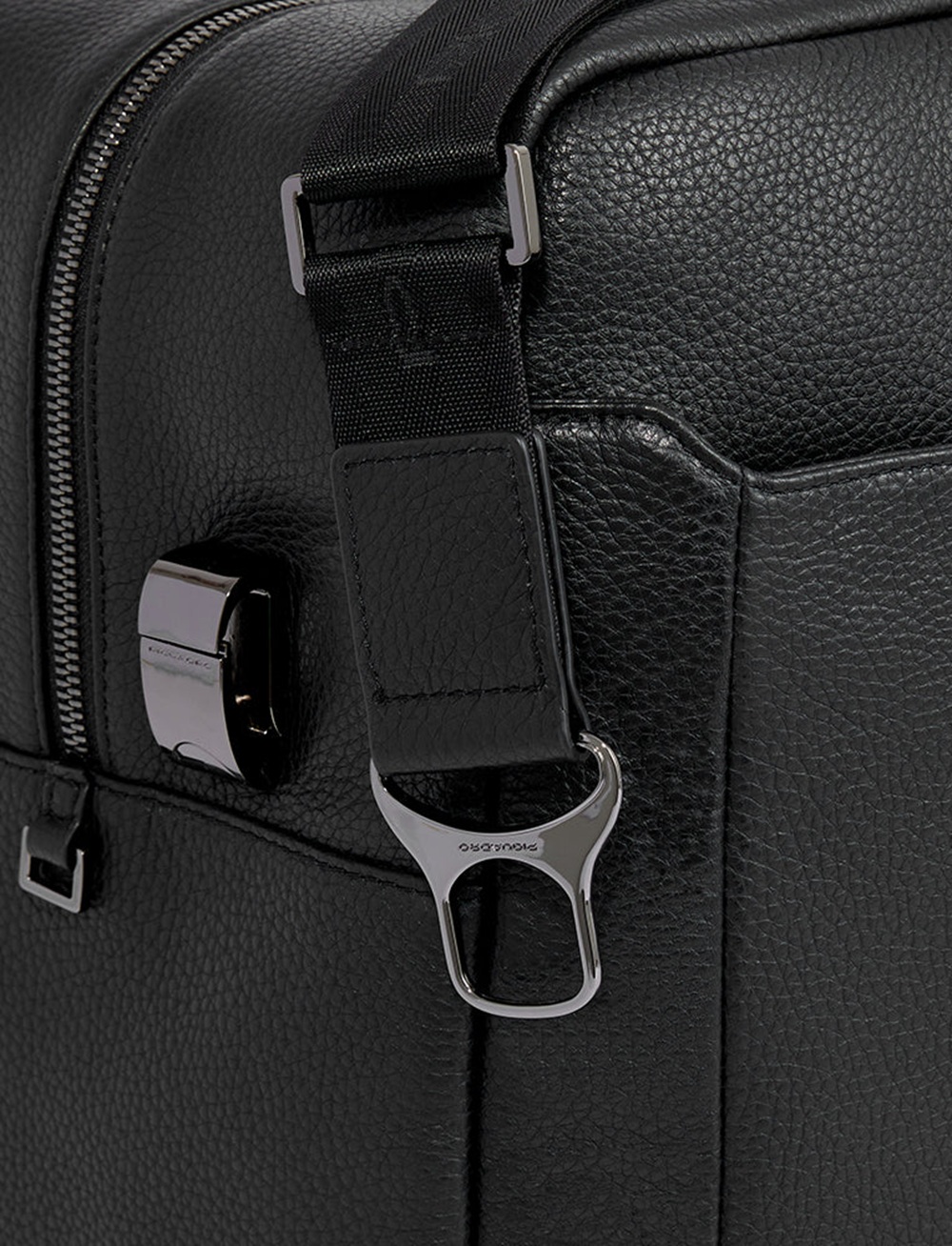 Borsone da viaggio in pelle con vano porta scarpe e sistema d’aggancio al trolley. COLORE NERO