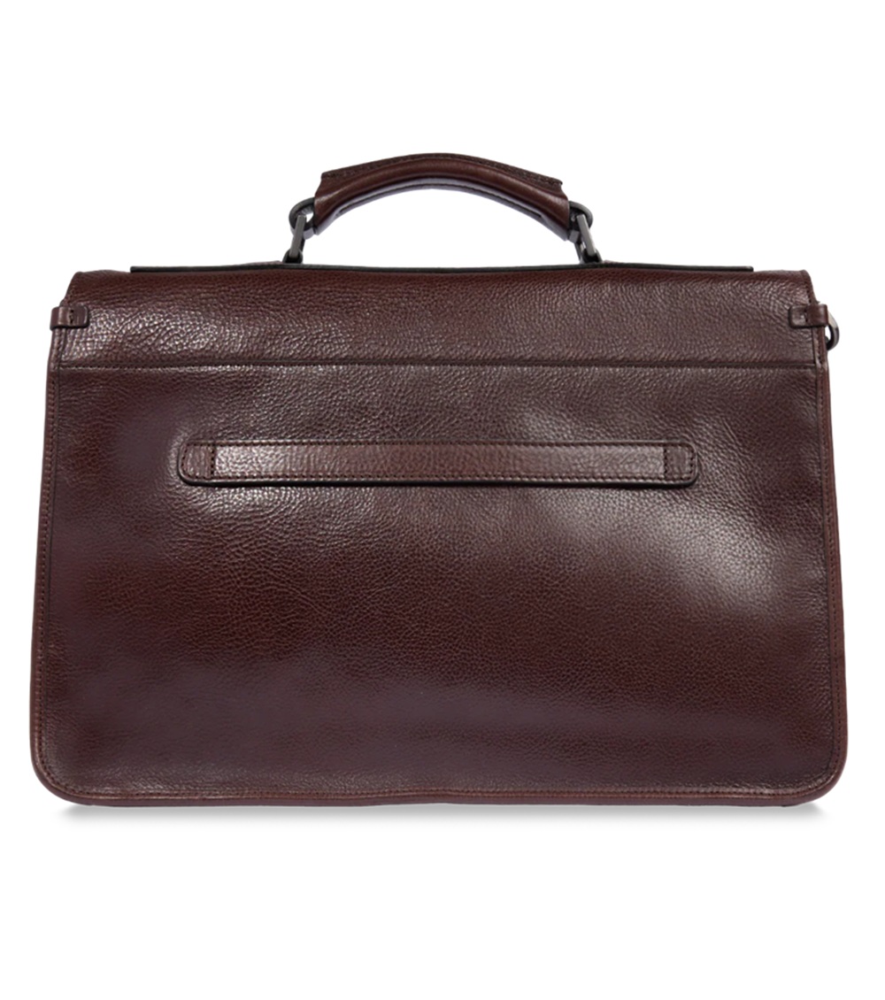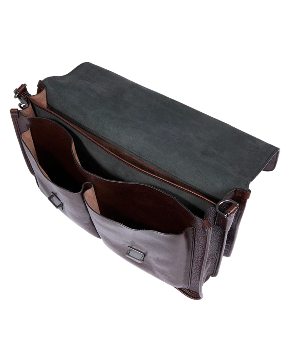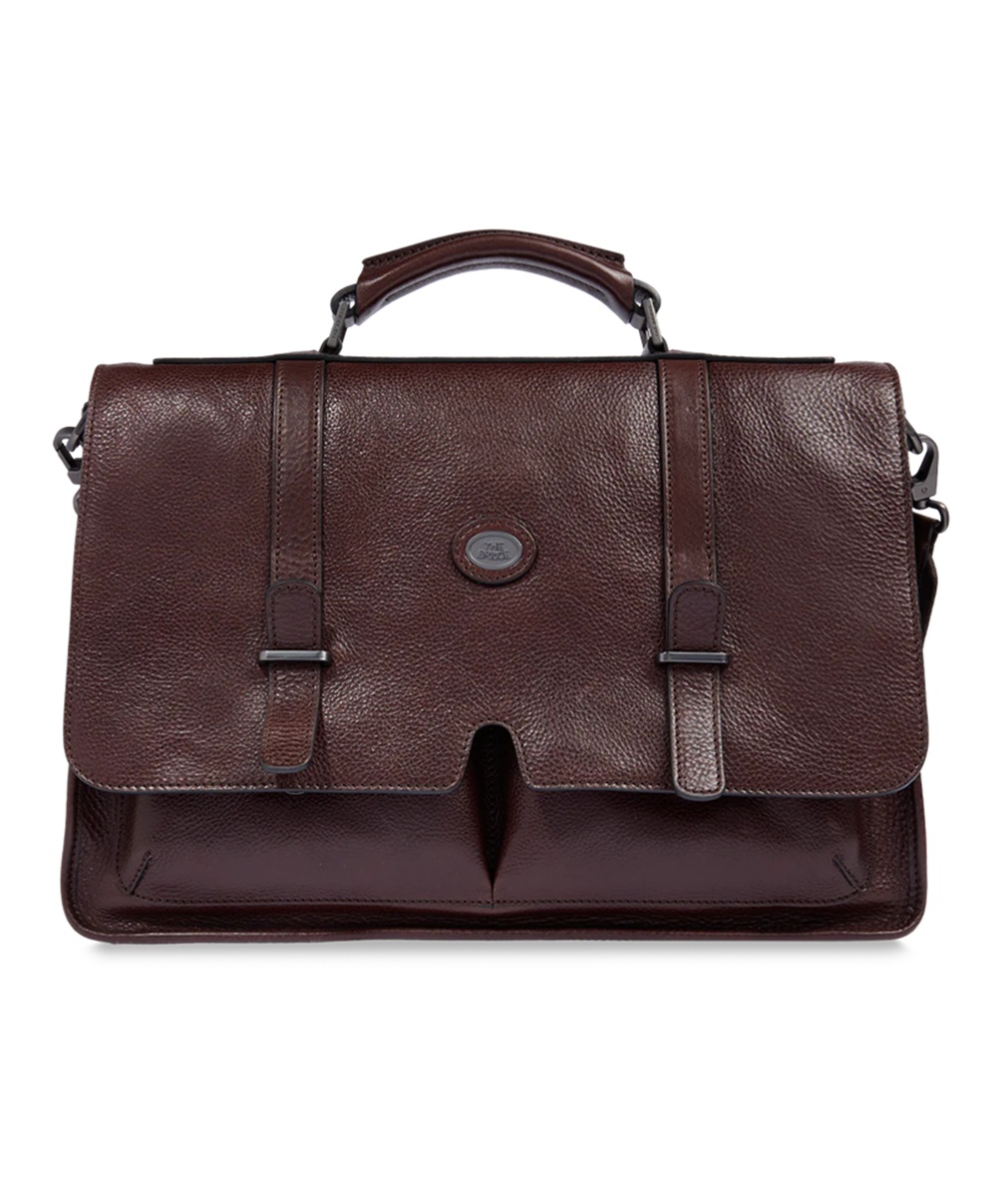 Cartella in pelle grande The Bridge con tracolla regolabile, tasche frontali e chiusura patta, elegante e pratica.