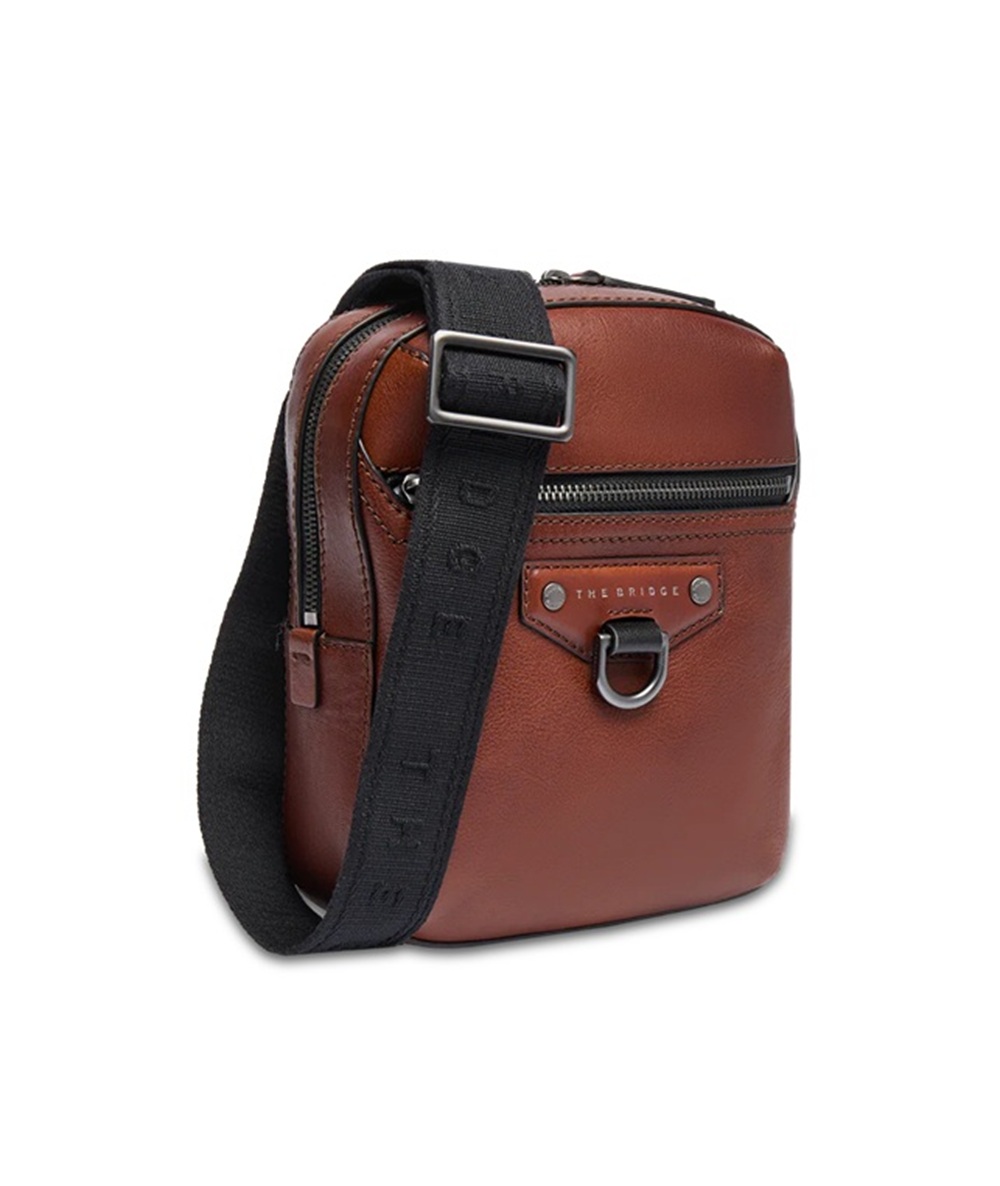 Tracolla uomo The Bridge in pelle con zip frontale, compatta e funzionale per l’uso quotidiano.