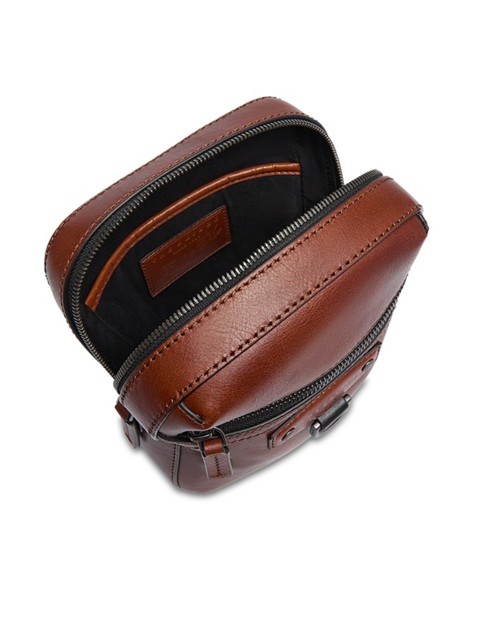 Tracolla uomo The Bridge in pelle con zip frontale, compatta e funzionale per l’uso quotidiano. COLORE MARRONE