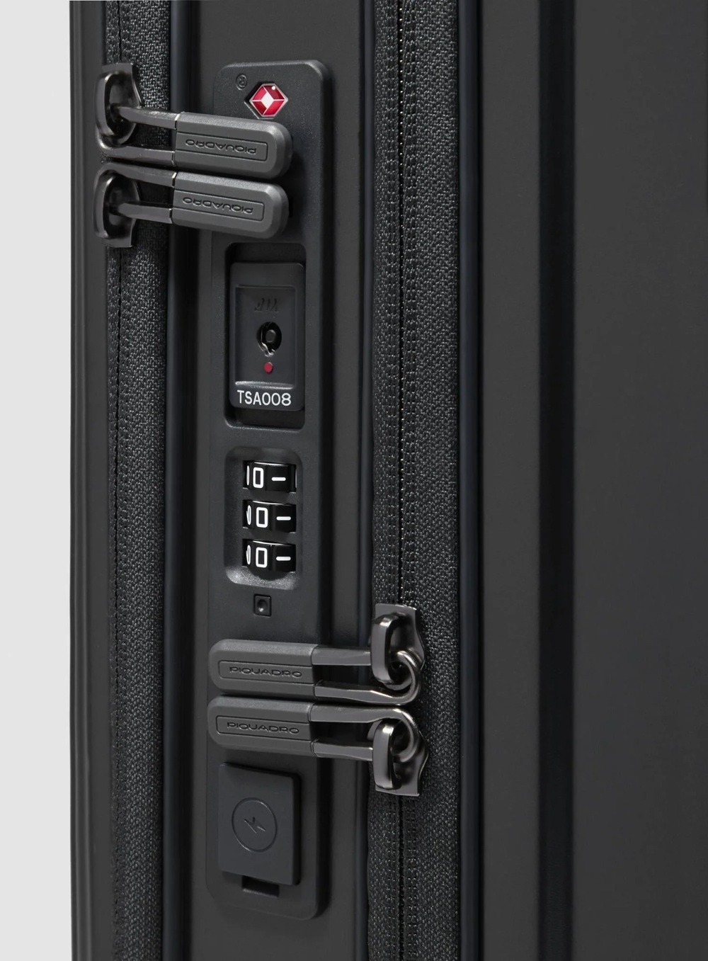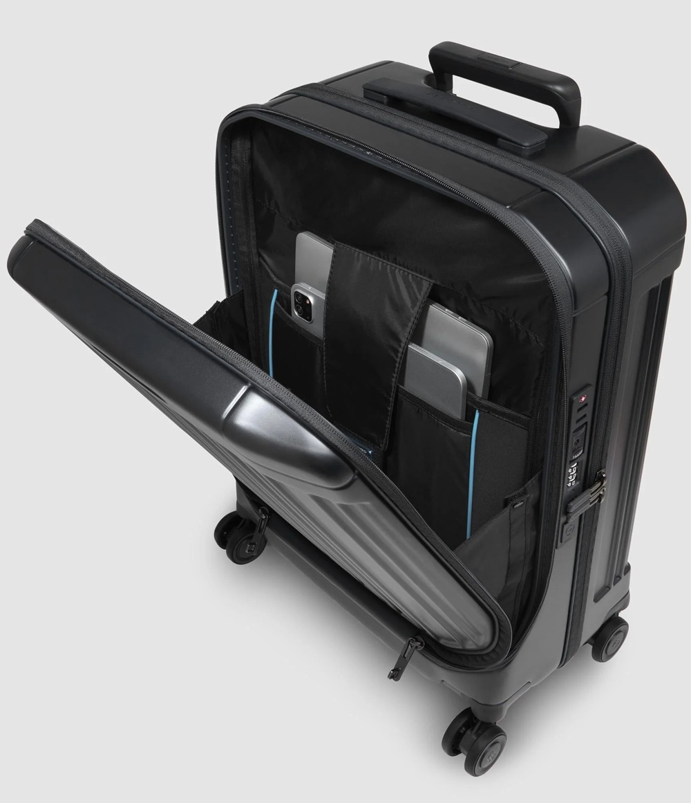Trolley bagaglio a mano a 4 ruote con tasca frontale antiurto per computer e iPad®Pro 12,9”, porte USB e USB Type C e fodera lavabile rimovibile