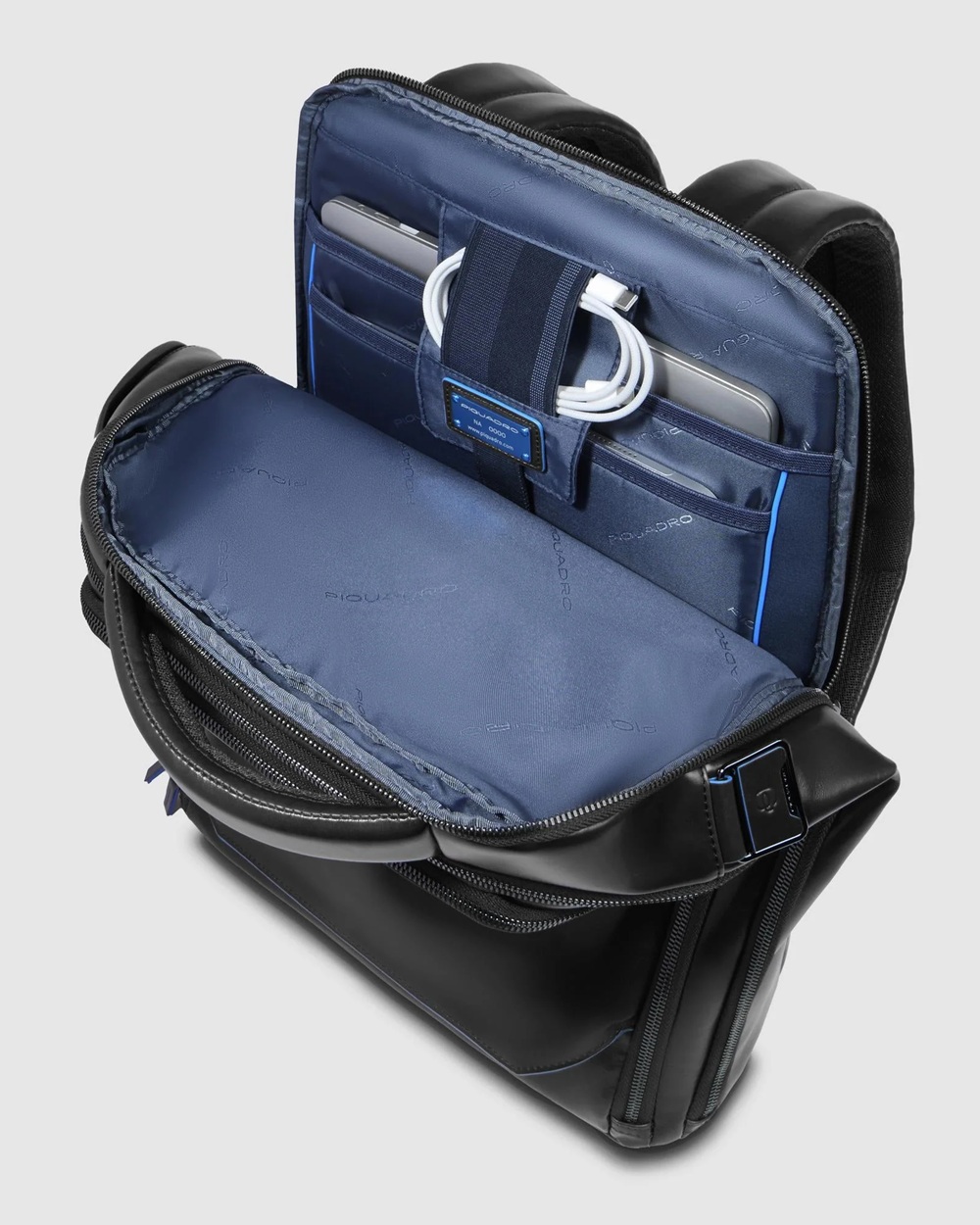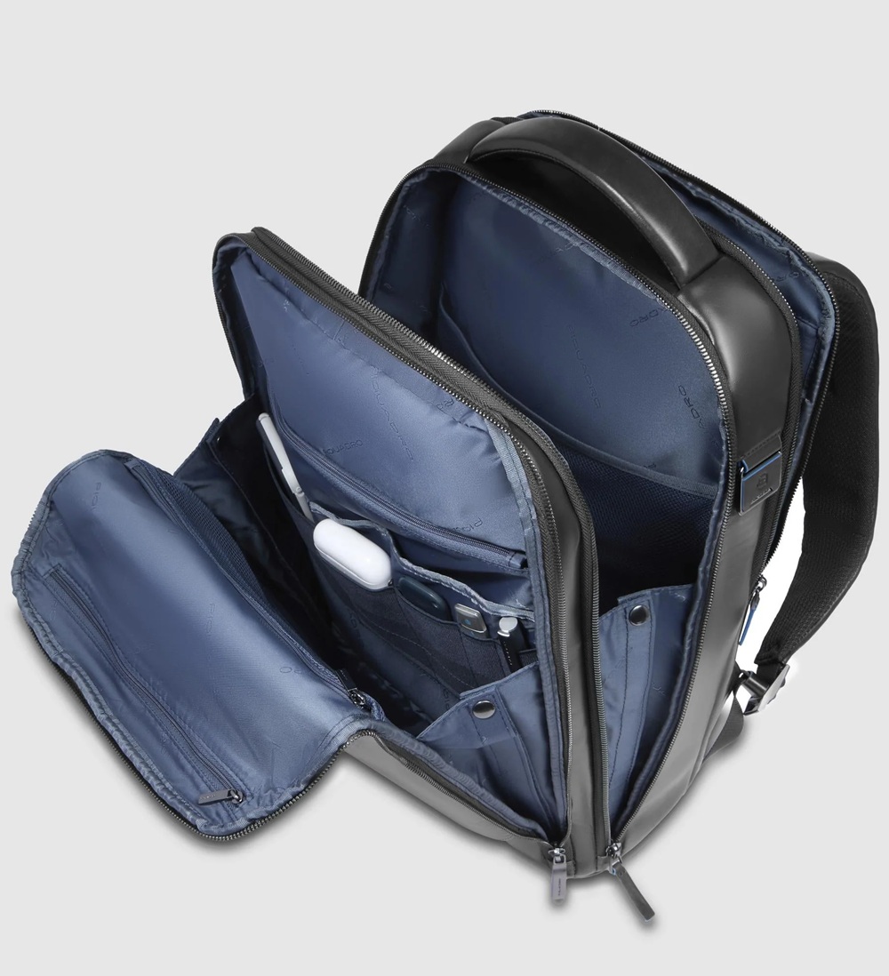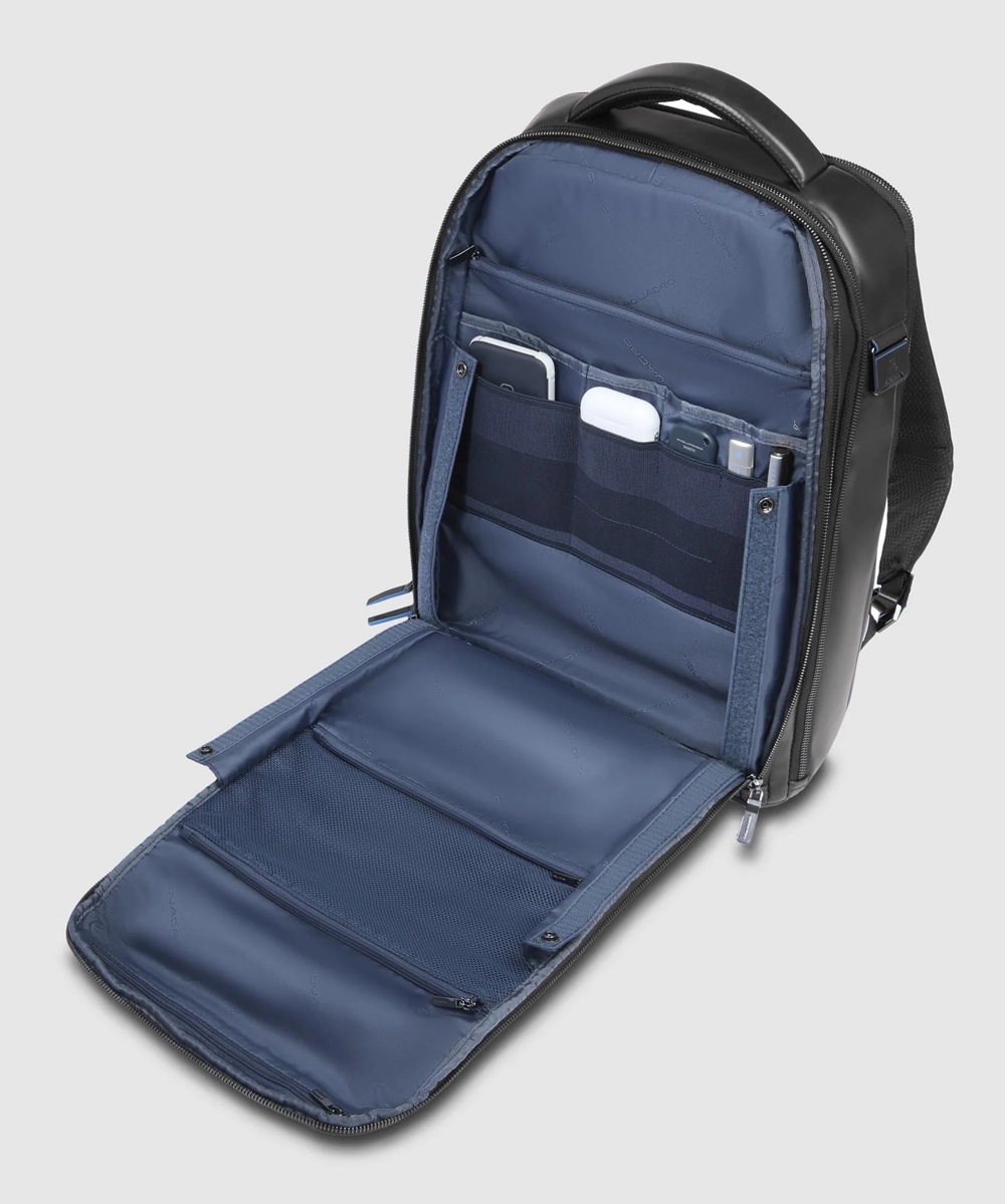 Zaino uomo fast-check personalizzabile in pelle porta pc e iPad®Pro 12,9″ con tasche per AirPods® e ombrello, protezioni antiurto e RFID